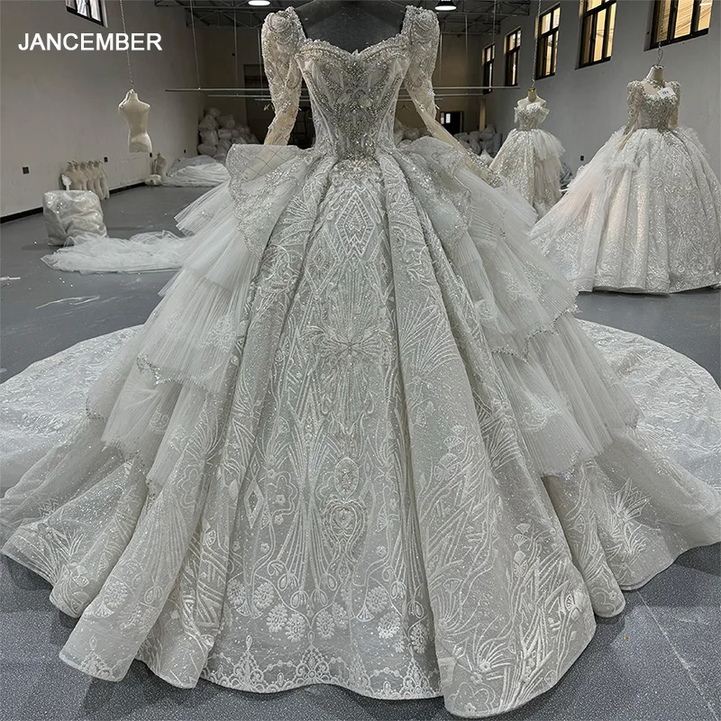 Jancember 2024 New Luxury Wedding Dress Lace Square Collar Bridal Dress Ball Gown Vestido De Noiva With Court Train MN242