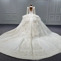 Jancember Ball Gown O-Neck Full Sleeves Beading Wedding Dress Backless Ruffles Luxury Wedding Gown Vestido De Novia MN183